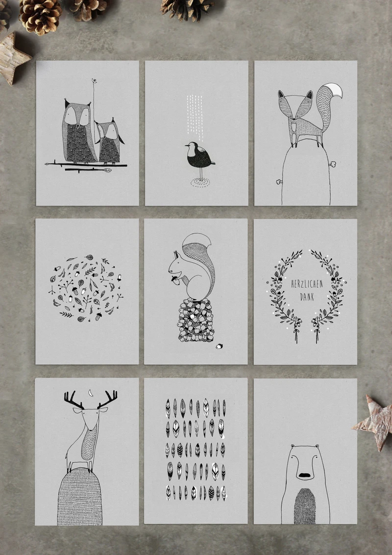 Ein Gruss aus dem Wald versenden: Die im Atelier C konzipierten und illustrierten Karten aus Recyclingkarton sind im Siebdruckverfahren veredelt und schweizweit in über 50 Conceptstores erhältlich.
