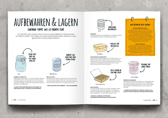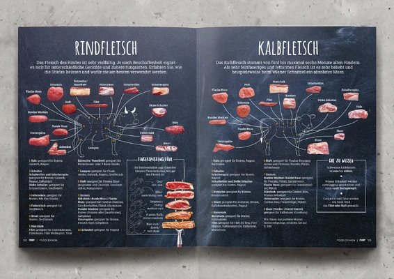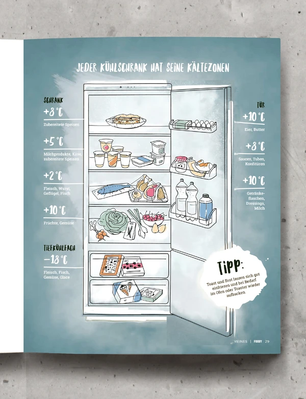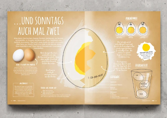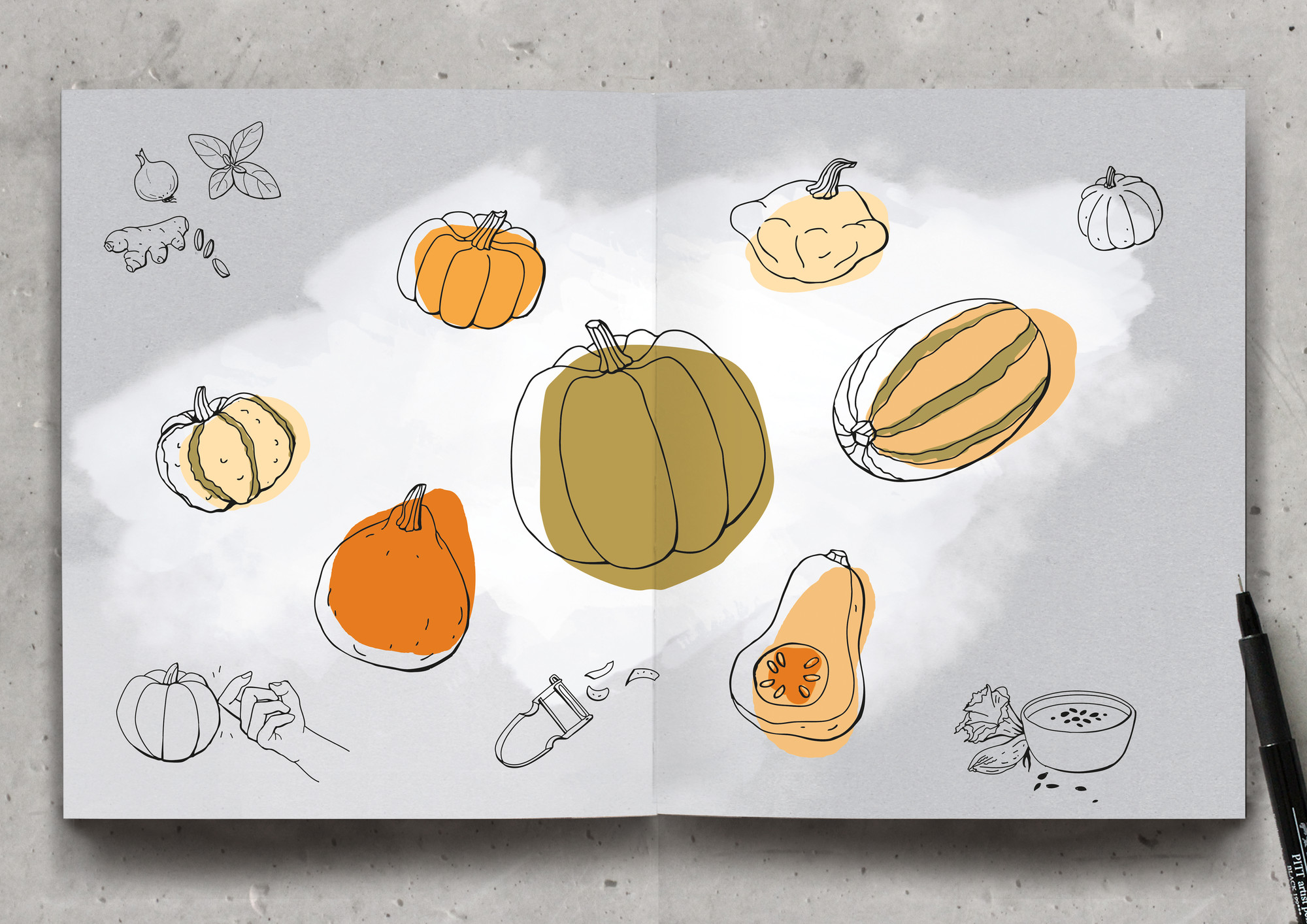 Konkret beinhaltete der Auftrag die Erstellung von 30 Illustrationen, von einfachen Gegenständen bis zu komplexen Darstellungen, die am Anfang des geplanten Fooby Kochbuches in die Grundlagen des Kochens einführen.