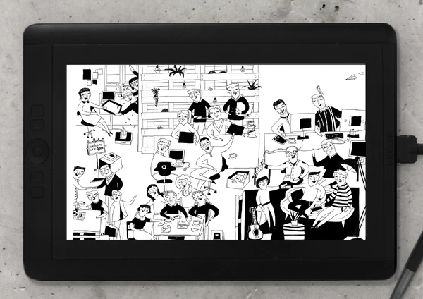 Lediglich das Grössenverhältnis der Räumlichkeiten musste vorskizziert werden, die Personen und Ereignisse im Bild selber sind jedoch während dem Zeichnen entstanden: Somit beeinflusst ein gezeichnetes Objekt die darauffolgenden Formen und das Bild entsteht intuitiv. Das bringt eine besonders natürliche und vom Zufall inspirierte Abbildung hervor, welche durch ein geplantes Layout oder eine Skizze an Spontanität verlieren würde.