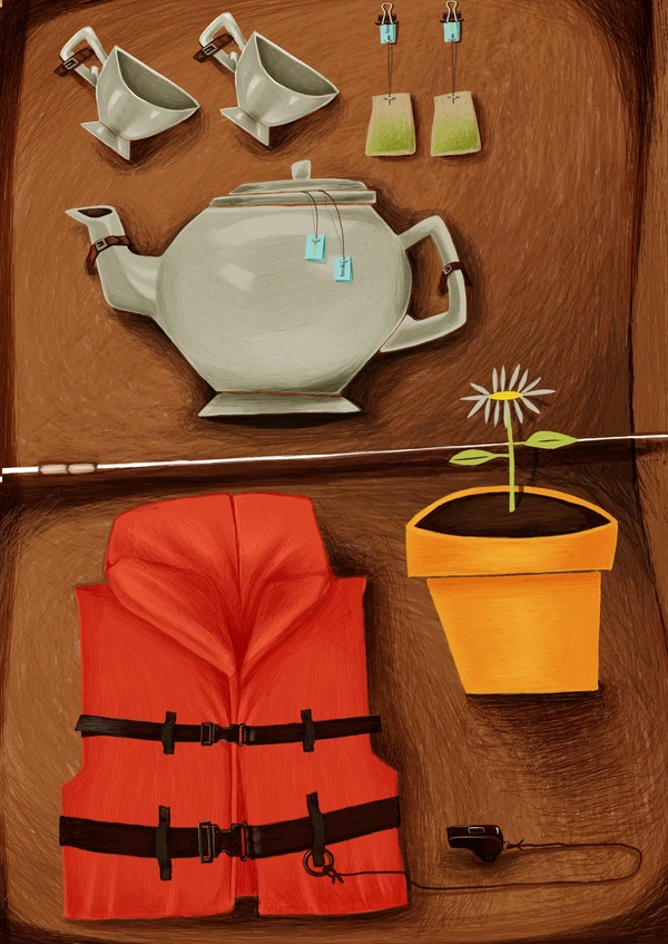 Der surreale Ansatz bedingte einen passenden Stil. Die Gegenstände sollten zur guten Erkennbarkeit realistisch abgebildet werden jedoch genug Platz für Humor lassen. Somit wurden diese leicht karikiert. Um der Illustration trotz der grossen Objekte eine interessante und detailreiche Erscheinung zu verleihen, wurden die Flächen mit Struktur bzw. Strichen durchbrochen, die für das Gesamtbild eine flimmernde, spannende Wirkung erzeugen.