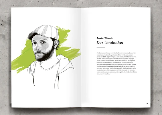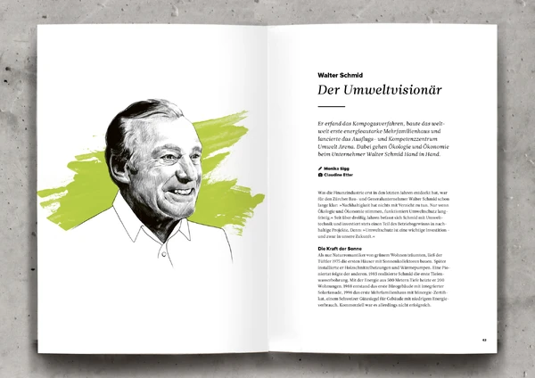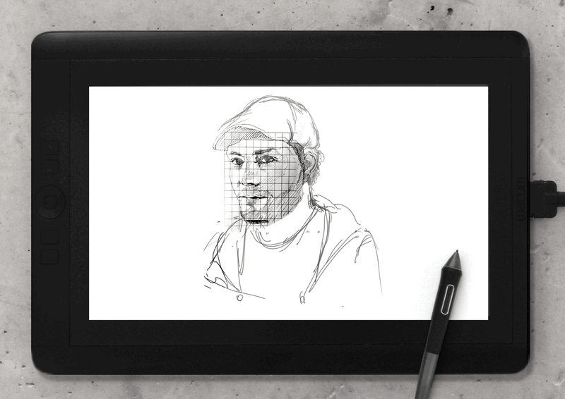 Der Kunde fragte für die Portraitierung von drei Persönlichkeiten an, da von ihnen jeweils kein ideales Bildmaterial zu finden war. Gewünscht wurde eine Umsetzung in schwarz- weiss, leicht schraffiert und nicht zu dunkel. Als farbliches Element durfte eine Pinselstruktur in den Hintergrund integriert werden. Die Umsetzung der drei Portraits gestaltete sich als aufwändiger, als gedacht, da z.t. die Position, Blickrichtung sowie Belichtung des Gesichtes oder die Auflösung des Bildes meist unpassend war. Zum Teil mussten aus bis zu drei verschiedenen Bildern eine Vorlage zusammen gesetzt werden, die Augenposition angepasst oder die Kopfform, Schulterpartie etc. ergänzt werden. Eine schnelle und einfache Technik, um die Gesichter dann zu zeichnen, ist die Platzierung eines Gitters über der Vorlage, welches eine ziemlich genaue Kopie des Gesichtes ermöglicht. Zudem kann eine Vorlage proportional optimal vergrössert oder verkleinert werden.