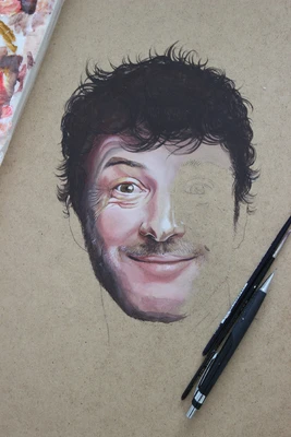 Für diese Arbeit war das Ziel, die Person möglichst genau abzubilden, jedoch eine zu fotorealistische Umsetzung zu vermeiden – eine eigene Handschrift sollte somit erhalten bleiben.