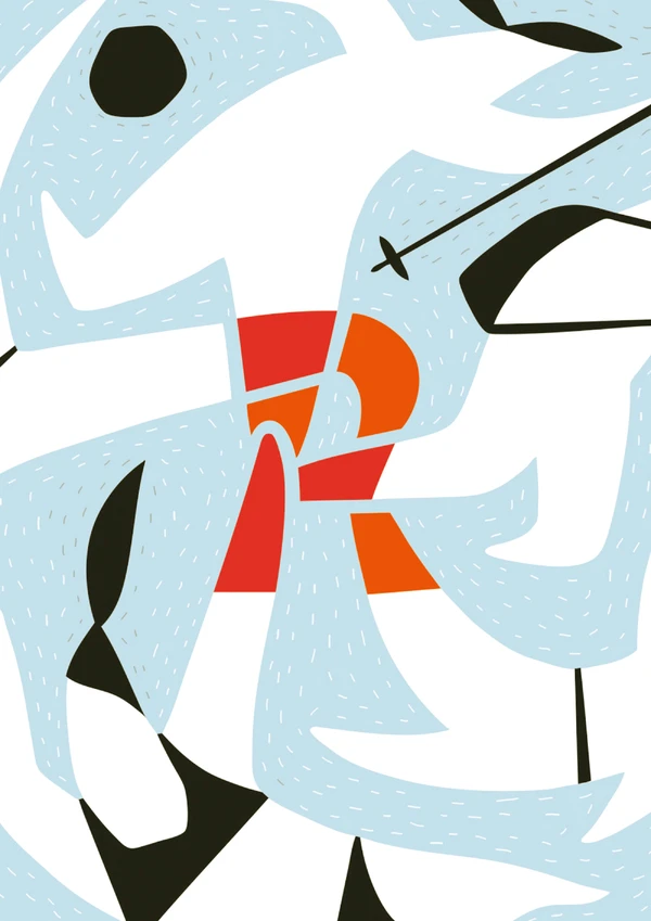 Zentral, im bildlichen, aber auch thematischen Sinne, nun die Darstellung der Krankeit “Rheuma”: Die mit Rheuma betroffenen Körperpartien sind rot gefärbt, eine einfache und verständliche Symbolfarbe für Schmerzen. Sie überschneiden sich jeweils untereinander und bilden den Buchstaben „R“, ein klares und neutrales Bildsymbol für Rheuma, zudem ist dieser das Logo der Rheumaliga Schweiz.