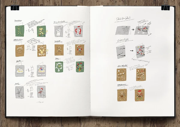 Als Aktion einer Schweizer Grossfirma, wurden dieses Jahr in der gesamten Schweiz rund 330‘000 Exemplare meiner Weihnachtskarten gedruckt und verteilt. Hierbei war die Idee des Kunden, dass der Beschenkte die Karten selber vervollständigen bzw. ausmalen oder damit basteln kann und den Karten einen persönlichen Touch verleihen soll. Zielgruppe der Aktion waren Eltern mit Kindern, daher sollten die Karten einfach und in wenigen Schritten verschönert werden können. Als Inspiration und zur Erklärung wurde zudem eine kleine Bastelanleitung mit Umsetzungsideen dazu verteilt.