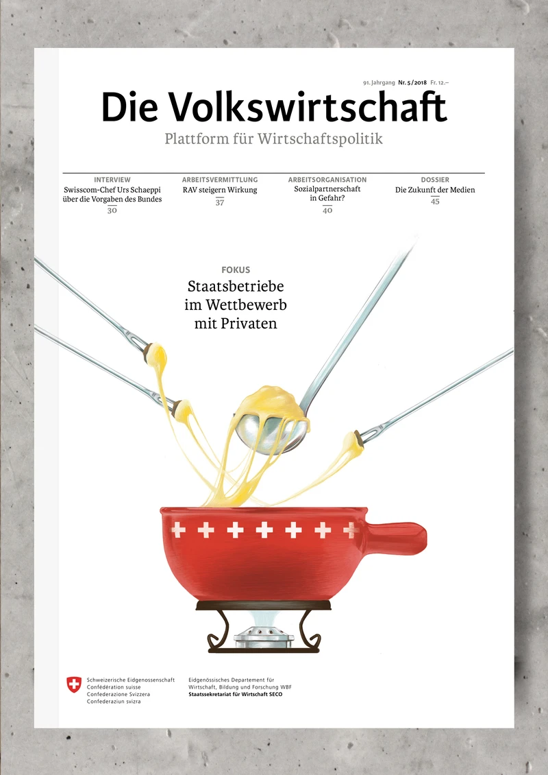 Für das Magazin "Die Volkswirtschaft" hat das SECO eine neue Illustratorin gesucht, welche über zwei Jahre das Erscheinungsbild des Covers prägen soll. Im Zentrum meines vorgeschlagenen Stilkonzeptes stand der Wiedererkennungswert der Coverillustrationen, ausgehend von der Themenwelt wie auch der Zielgruppe des Magazins. Dabei sollte Technik, Stil und Farbwelt eine optische Konstanz ergeben, die Ausgaben aber nicht an Vielfältigkeit und Variantenreichtum verlieren. Bei der inhaltlichen Linie habe ich eine eigene Bildsprache konzipiert, welche die sachlichen Themen auflockert und humorvoll visualisiert. Hierbei beschränkt sich die Coverillustration auf die Darstellung von verfremdeten oder zweckentfremdeten Objekten, welche als Bildmetaphern das Heftthema aufgreifen, interpretieren oder ergänzen.