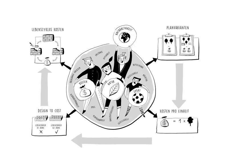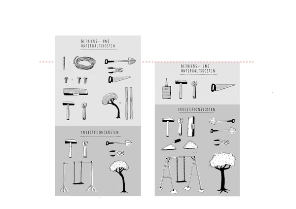Des öfteren muss Stadtgrün Bern für politische Entscheide, Budgetanfragen oder interne Sitzungen entsprechende Themen referieren. Bisher wurden diese mit Hilfe von Powerpointpräsentationen veranschaulicht, wobei das zusammengewürfelte Grafik- und Bildmaterial auf den Folien der Komplexität der Inhalte nicht gerecht wurde. Für Personen, die zudem kein fachliches Vorwissen haben, war ein schneller Zugang nicht optimal möglich. Im Zentrum des Redesigns stand daher eine einfach und schnell erfassbare Veranschaulichung von komplexen Zusammenhängen und Themen, vorzugsweise in einem humorvollen und visuell auflockernden Stil.