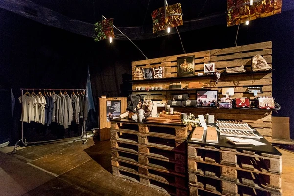 Unten: Fotografien der Merchandising Produkt im Festival Shop, Fotos: Florian Aeby